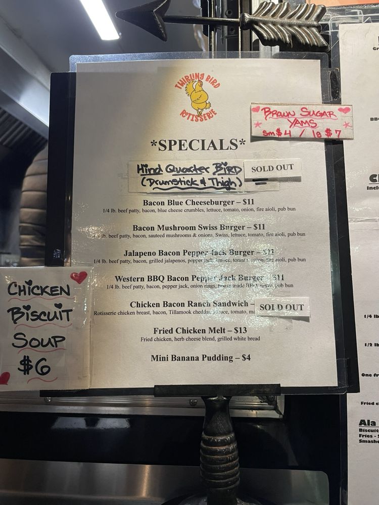 Welcome to Twirling Bird Rotisserie, a gem located at 311 N Water St in Silverton, OR. This delightful eatery specializes in mouth-watering rotisserie chicken, renowned for its flavor and quality. The menu features enticing options like the Chicken Strip Baskets, where you can enjoy crispy fried tenders paired with delicious sides and sauces.